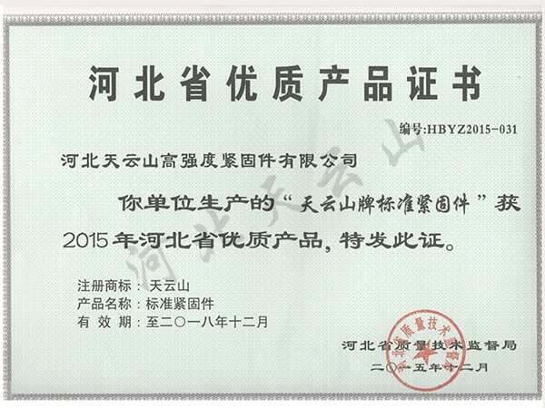 優(yōu)質(zhì)產(chǎn)品證書(shū)