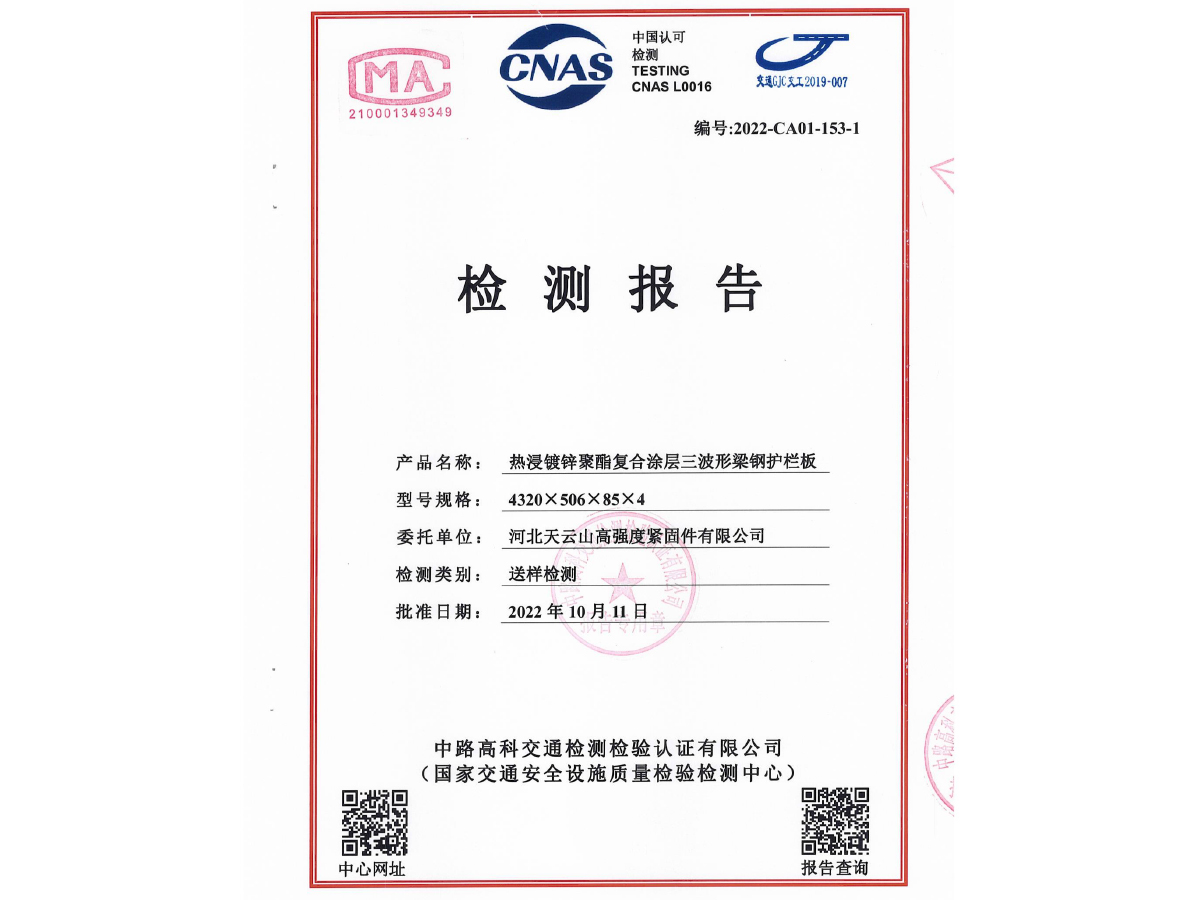 噴塑三波護(hù)攔板檢測(cè)報(bào)告